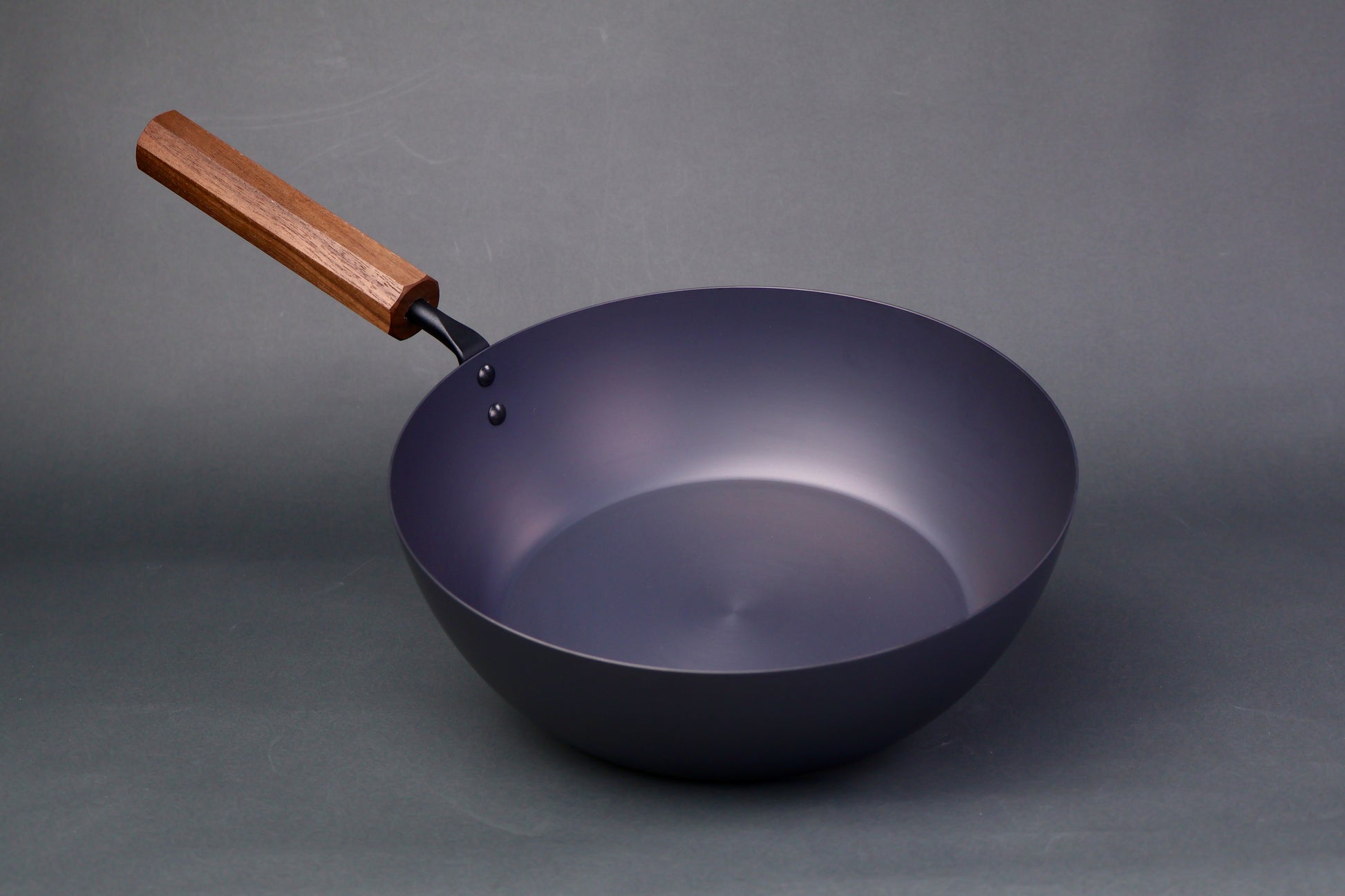 Introducing a carbon steel cookware line from Tanabe Kanagu, with an octagonal, wood handle. The iron is nitrided (infused with nitrogen) which prevents rust and scratches, as well as strengthens the durability of the iron. The wood handle is robust and provides a stable grip for a variety of uses. The look and feel of these pans is truly unique.