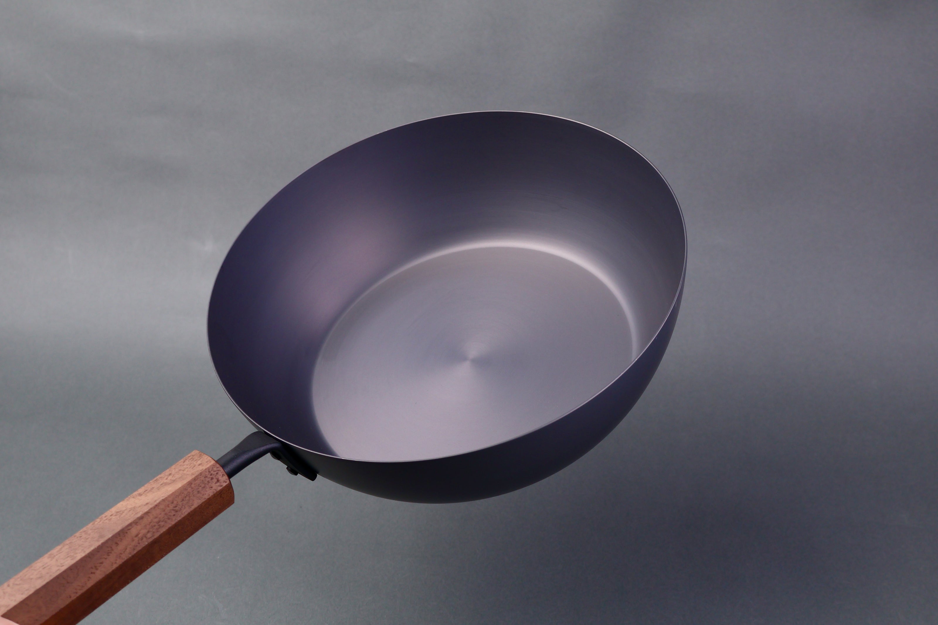 Carbon steel, octagonal wood handled cookware, with nitrided iron.