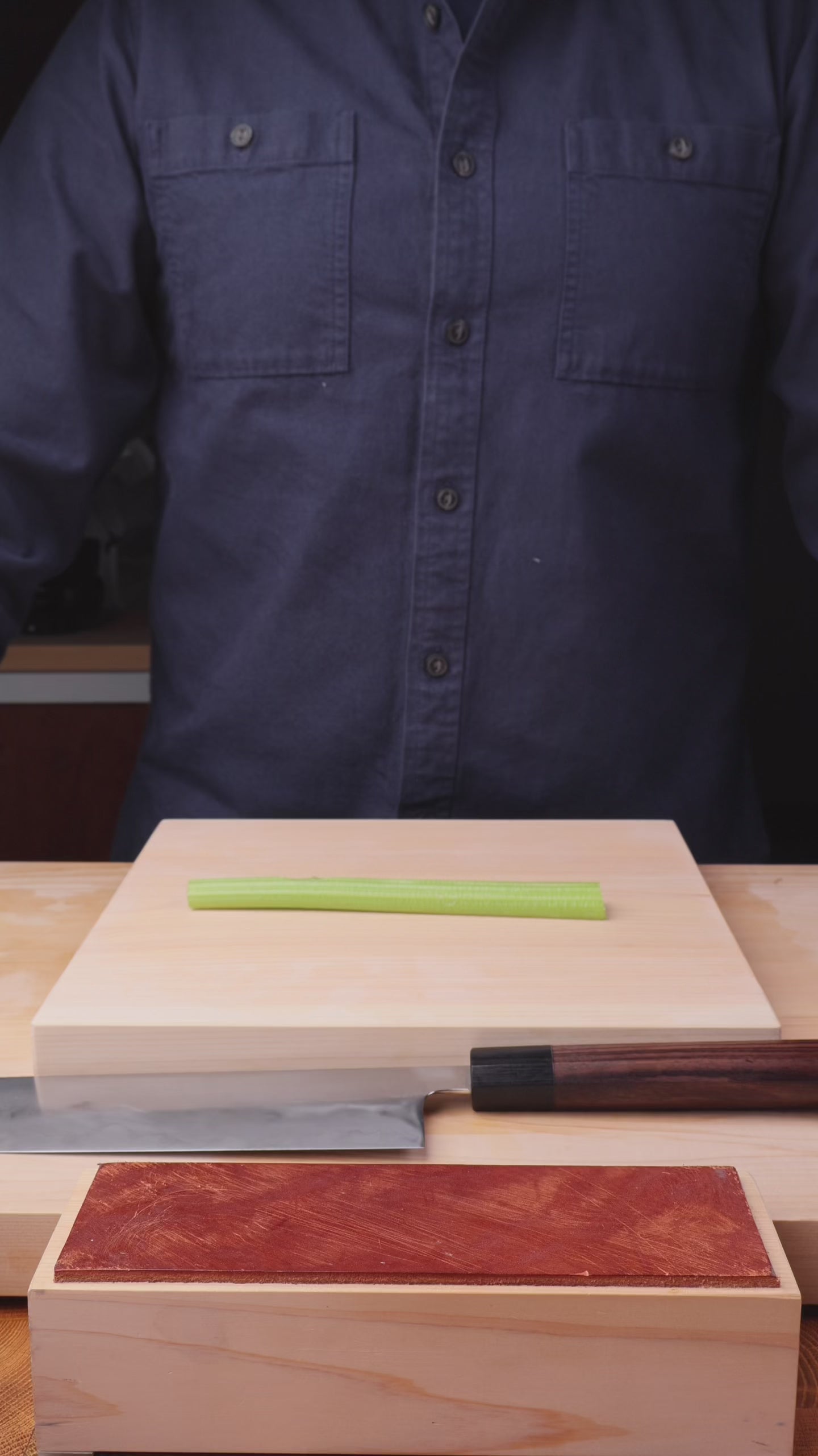The Hinoki Leather knife Strop is an essential tool to quickly refine and hone the sharpness and edge of your kitchen knife.