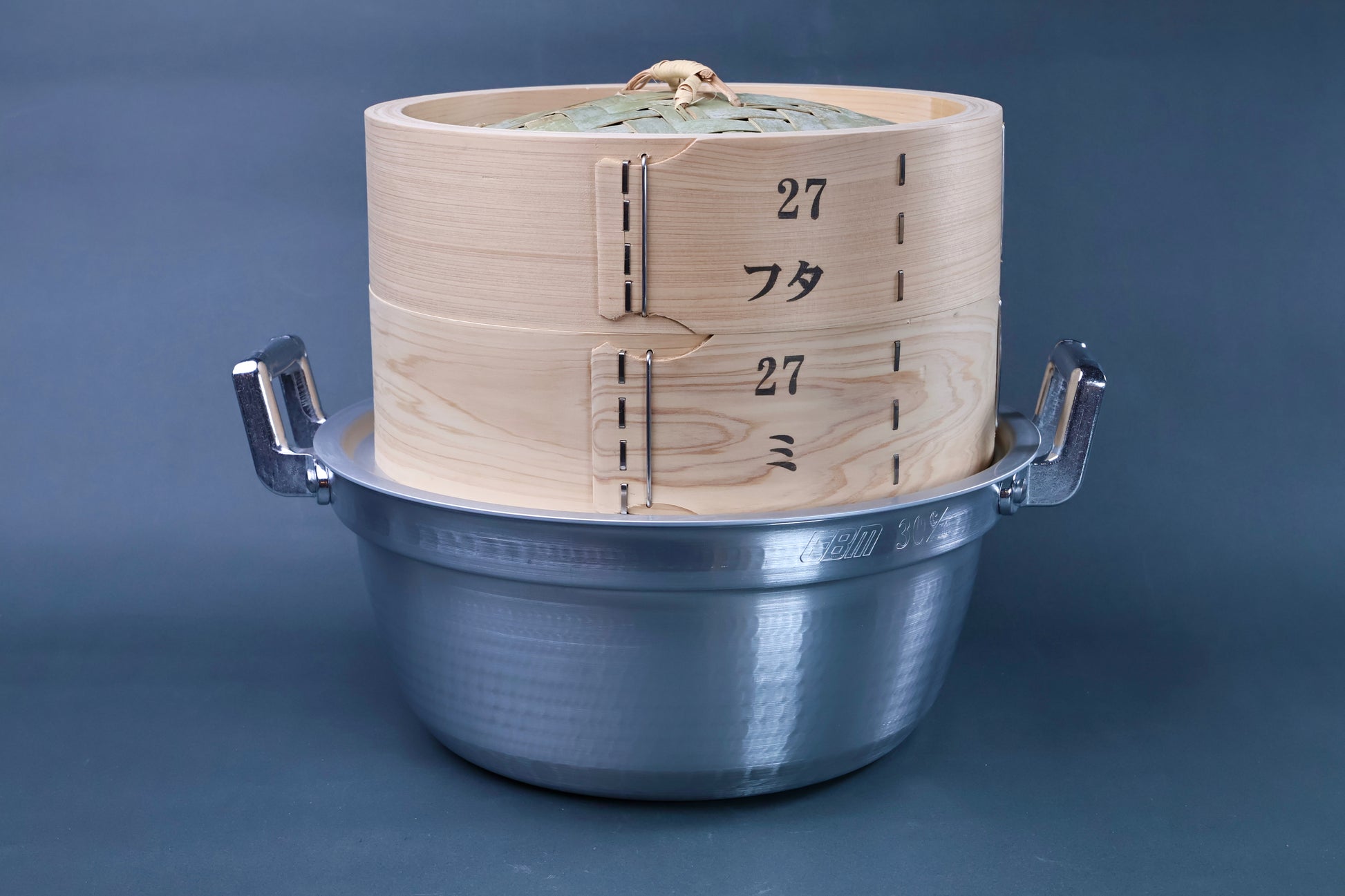 The Dantsuki Seiro Pot works well for a wide variety of uses, but it is particularly useful for steaming, due to the inner ledge of the pot, which holds a steaming basket (seiro). The pot also works really well for drop lids, which sit directly on top of food. This pot is made of aluminum, which is excellent at conducting and distributing heat.