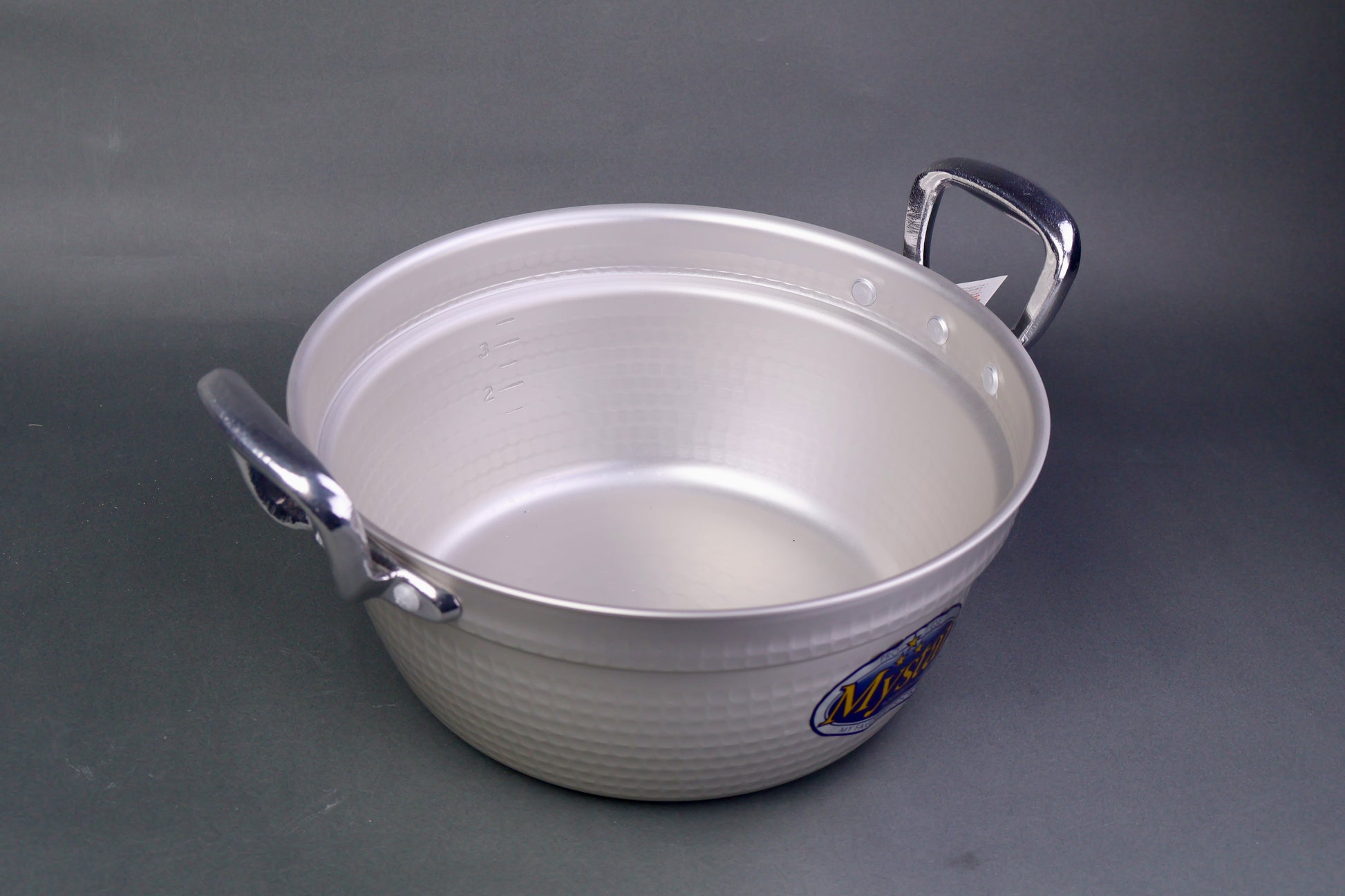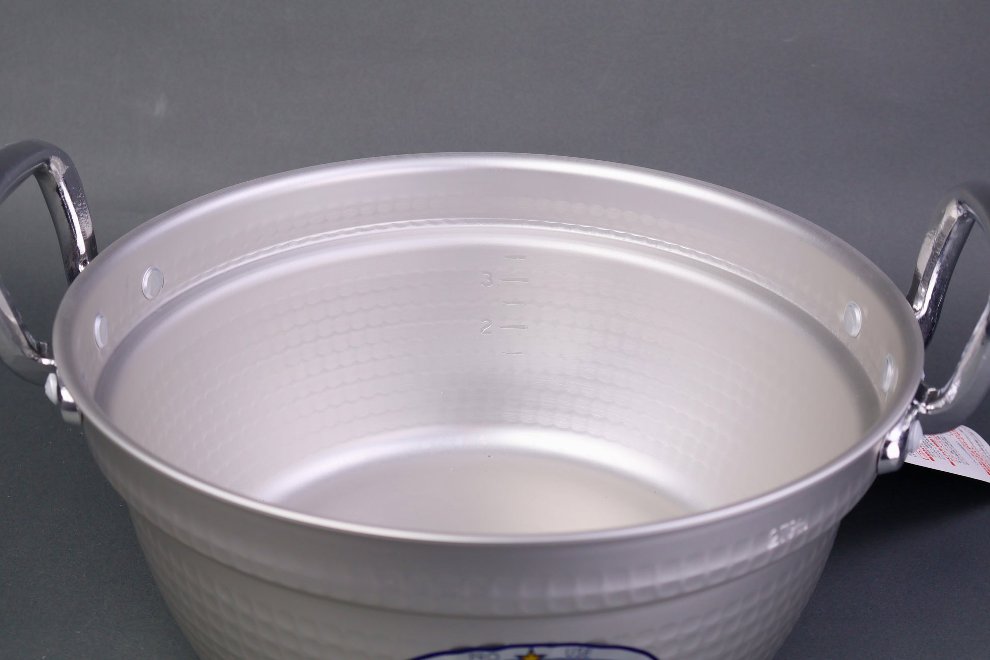 The hammered appearance of this pot results in excellent thermal conductivity. It also strengthens its durability and increases the surface area.