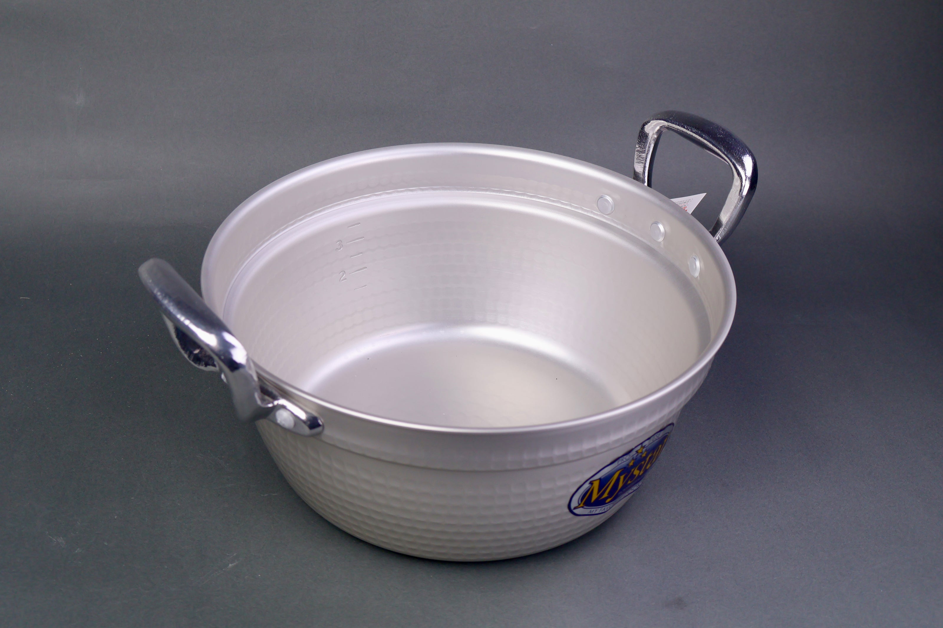 Aluminum, two-handled steam pot, made in Toyama Prefecture.