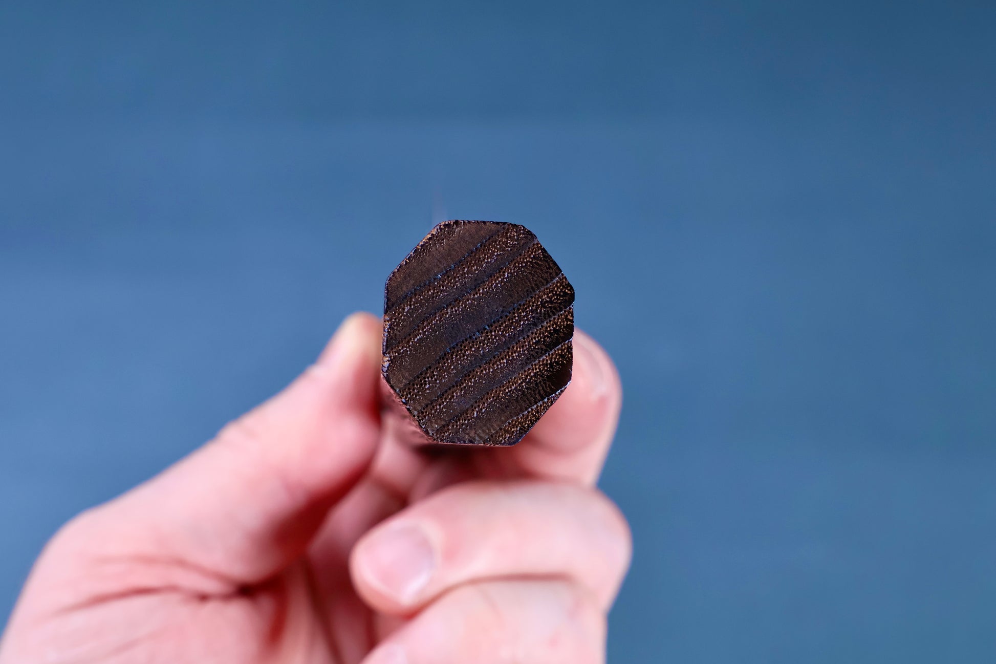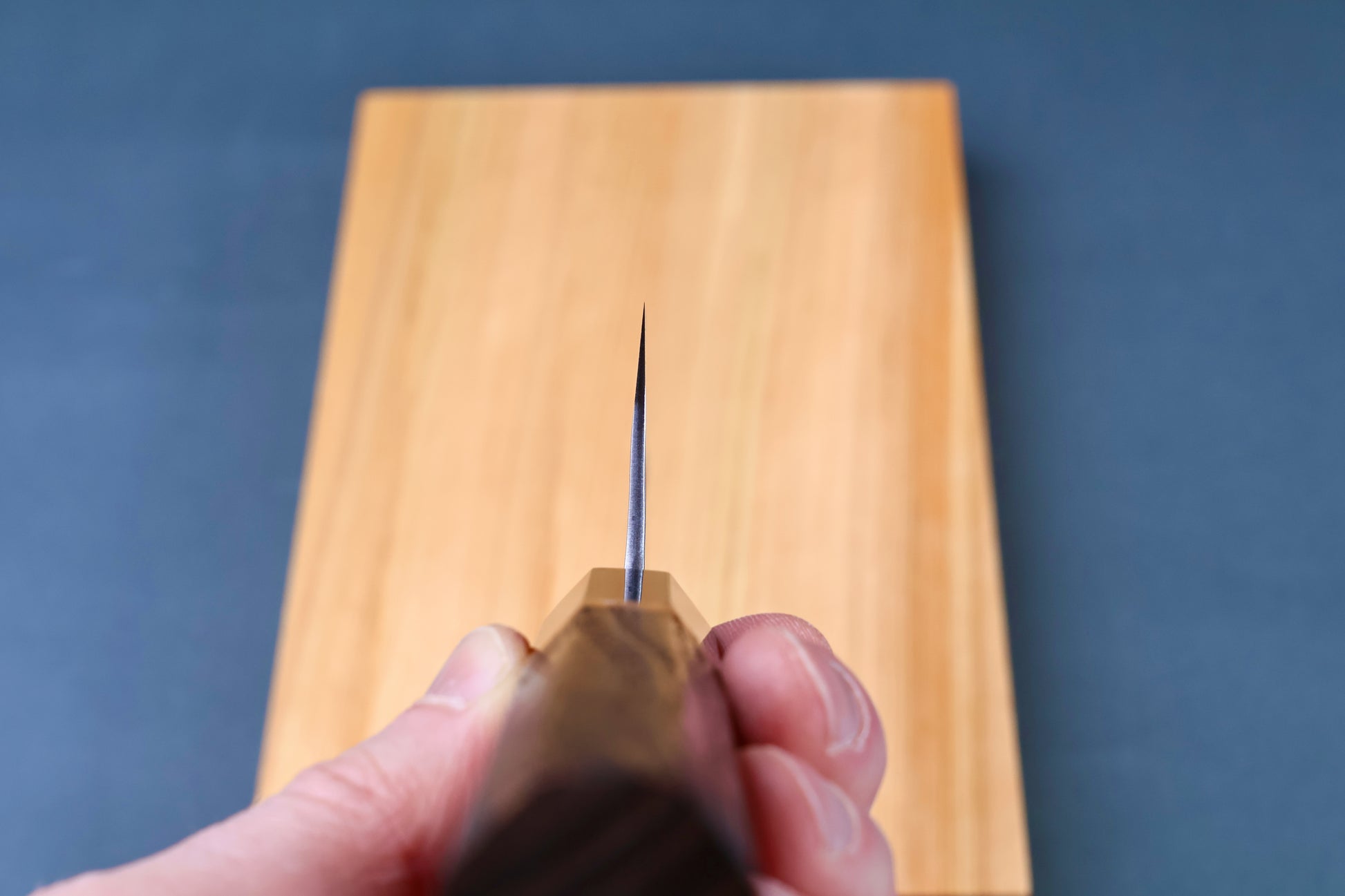 Tsuchime is the hammered, dimpled surface of the upper portion of the knife. This is a traditional Japanese metalworking technique that is both functional and aesthetic. The hammered surface is said to prevent food from sticking and improve cutting performance.